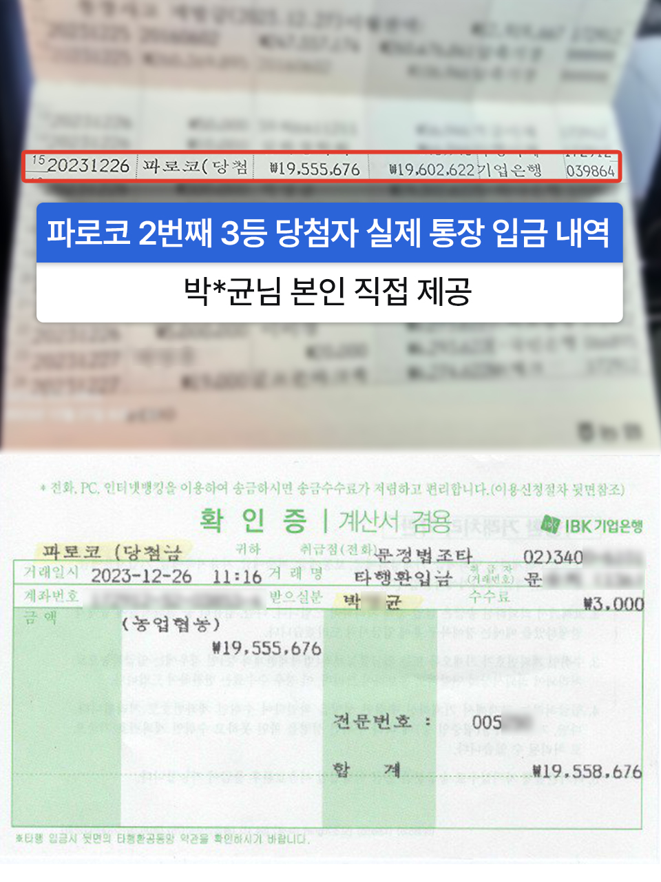 [ 당첨금 입금 받은 통장 및 입금증 ]